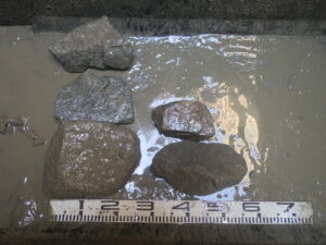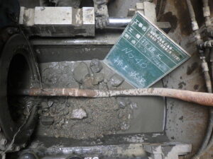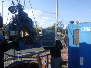 広島県広島市出島 国際拠点港湾 広島港 出島地区 下水道整備工事(2工区) on 2026年1月7日 in CBM 広島県広島市出島 鋼管φ500-本管φ250 L=18m、L=60m 推進工事 CBM600型マシン吊り降ろし状況。 NO.40排土状況 礫出現 NO.61削進状況 刃先到達状況。 2スパンとも無事施工完了しました。 お疲れ様でした。