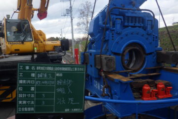 広島県広島市出島 鋼管φ500-本管φ250 L=18m、L=60m 推進工事 CBM600型マシン吊り降ろし状況。 NO.40排土状況 礫出現 NO.61削進状況 刃先到達状況。 2スパンと […]